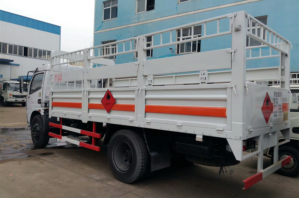 該車適用于運輸危險品。用于運輸具有**容器(瓶)包裝的易燃氣體(類項號:2.1):液化石油氣,壓縮甲烷或甲烷含量高的壓縮天然氣,乙炔,乙烷,丁烷,丙烯,丁烯,二甲醚,壓縮氧;用于運輸具有**容器(瓶)包裝的非易燃無毒氣體(類項號:2.2):二氧化碳,壓縮氧(氮,空氣,氦,氬,氖)。防護材料:Q23**碳鋼,連接方式:左右側面及后部防護均采用焊接連接,后部防護斷面尺(mm):**×50, 后部防護離地高度(mm):500。僅采用底盤子午線輪胎和帶ABS的底盤,該車前輪安裝盤式制動器,前置排氣管,裝配限速裝置,限速80km/h。安裝帶有衛(wèi)星定位功能的行駛記錄儀。ABS系統(tǒng)生產廠家及型號:襄陽東風隆誠機械有限責任公司,ABS/ASR-24V-4S/4M。隨底盤選裝前面罩,前保險杠,前組合燈具。上裝可選裝無柵欄。后部液壓尾板收起狀態(tài)的水平長度是250mm。危險貨物運輸車輛的車輛類型(FL型車輛)。 |