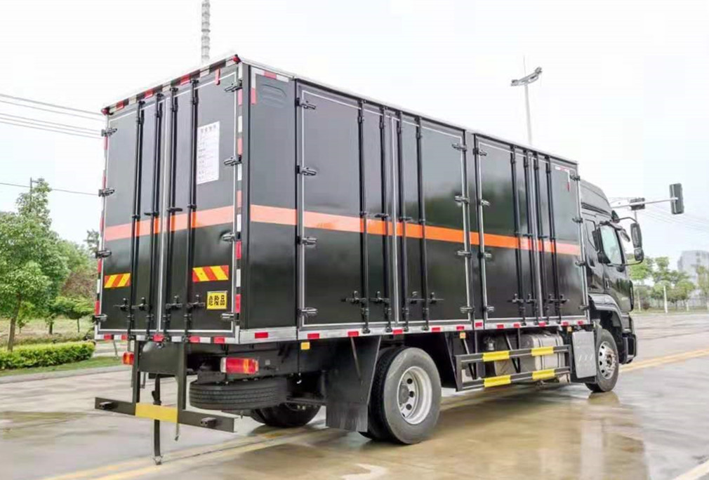 隨底盤選裝M3B駕駛室新面板,選裝導(dǎo)風(fēng)板,選裝前面板亮條,選裝A柱貼膜,選裝保險(xiǎn)杠、翼子板,選裝車門下飾板,選裝臥鋪側(cè)窗,選裝綠玻璃,選裝導(dǎo)流罩,選裝高頂駕駛室;該車為危險(xiǎn)品運(yùn)輸車,類型為EX/Ⅲ;廂體頂部密封,不可開啟,廂體兩側(cè)選裝不同形式側(cè)開門及開門位置或不帶側(cè)門,選裝瓦楞板結(jié)構(gòu).運(yùn)送爆炸品的項(xiàng)號(hào): 1.1 D,1.1 D,1.1B,1.1B,1.1G ,1.1C,1.3C,1.1 D,1.1 D,1.4G,1.1D,1.1 D,1.1B,1.1B,1.3C,1.1C,1.3C,1.1D 。側(cè)/后防護(hù)材料為Q235,連接方式:焊接連接,后防護(hù)截面尺寸(mm):120×60,離地高度410mm。選裝液壓尾板時(shí),后防護(hù)截面尺寸(mm):600×130,離地高度410mm,液壓尾板收起狀態(tài)的水平長(zhǎng)度為280mm,尾板重量為550kg;該車僅使用排氣管前置、前輪為盤式制動(dòng)器、裝配子午線輪胎的底盤,轉(zhuǎn)向輪安裝輪胎爆胎應(yīng)急防護(hù)裝置,后軸采用空氣懸架,安裝導(dǎo)靜電帶;該車裝有ABS,ABS型號(hào)/企業(yè):ABS-E 4S/4M/威伯科汽車**系統(tǒng)(**)有限公司,CM4XL-4S/4M/廣州瑞立科密汽車電子股份有限公司;該車安裝具有衛(wèi)星定位功能的行駛記錄儀,該車裝配有限速裝置,限速80km/h。采用發(fā)動(dòng)機(jī)YCS06245-60A,油耗值為:25.8L/**km。選裝雙開門。 |